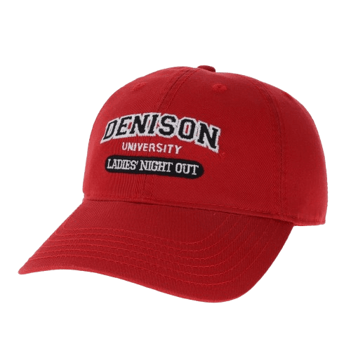 Alumni gush over these Classic Ladies' Night Out hats. The Denison Classic Hat displays the university name as well as the text Ladies' Night Out. These hats are also perfect for recent grads, grandparents, parents, or even prospective students. There is nothing located on the back of these hats. They are fully adjustable with a pull cord in the back. These make the perfect gift for almost any alumni or family from Denison