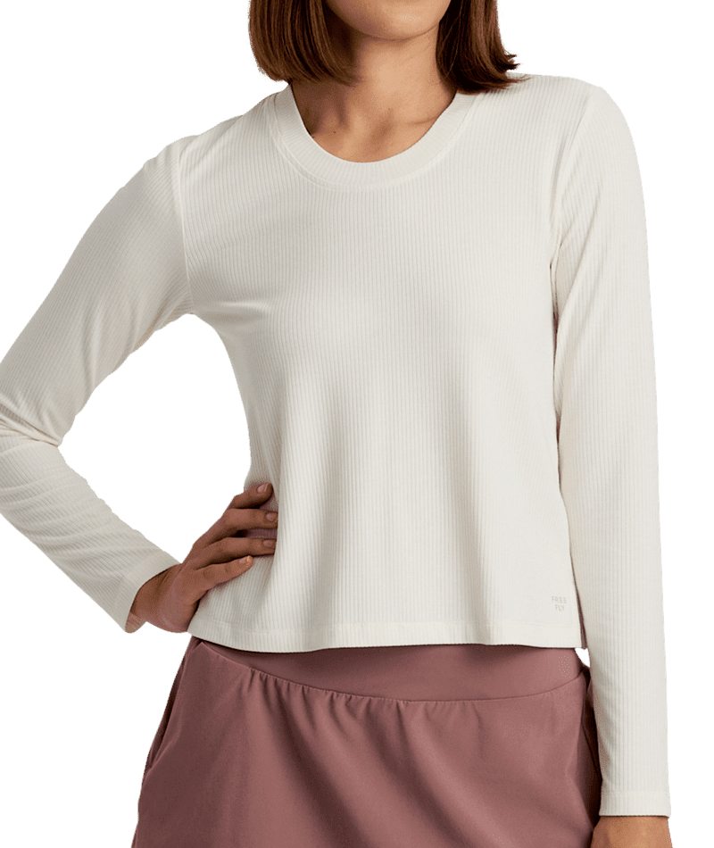 Free Fly Womens Ribbed Bamboo Long Sleeve Sea Salt