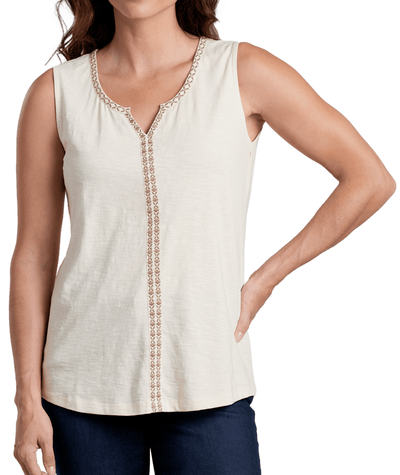 The KÜHL SHAY TANK features super soft Wildfibre 100% Organic Cotton. Custom embroidery and crossover pleat add stylish details to this must-have summer tank top.