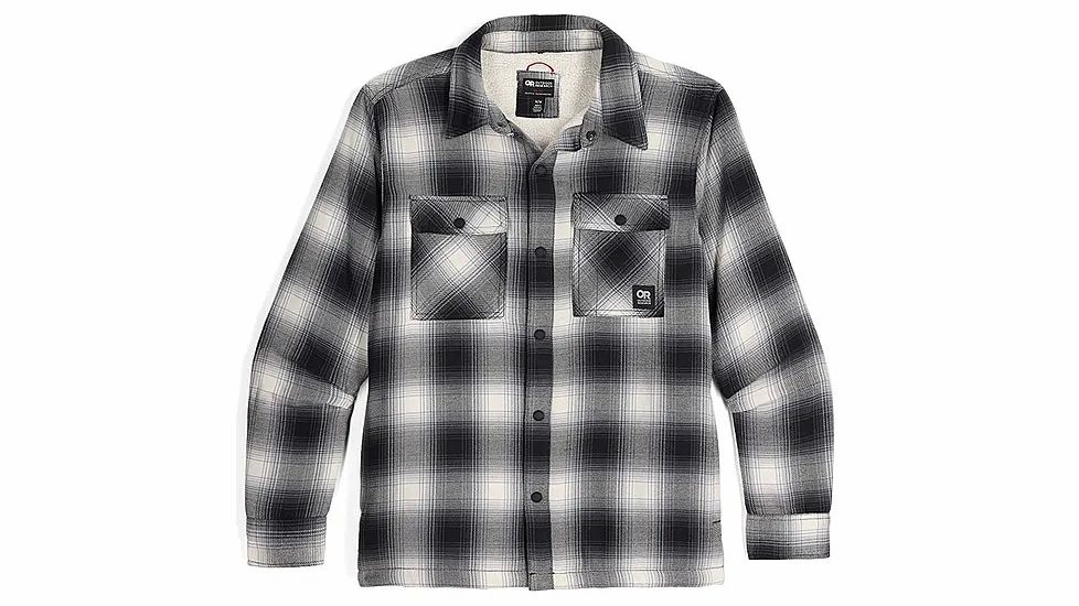 The Outdoor Research Men's Feedback Shirt Jacket utilizes recycled insulating materials for layering on cool days or when the sun sets beyond the horizon. The torso is built with 100% polyester and a sherpa fleece lining for added insulation, while the arms feature VerticalX ECO™ insulation that breathes as it insulates. Snap button closures on the front and sleeves are a cinch to open and close, and the jacket features an interior left chest zip pocket and UPF 50+ sun protection. The ultimate overshirt when temperatures drop, the Outdoor Research Men's Feedback Flannel Shirt is the go-to layering piece for casual outdoor wear.