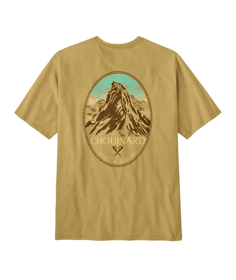 We added gradient-printed color to this classic graphic from the early days of Patagonia. The artwork is screen-printed on the Men's ChouinardŽ Crest Pocket Responsibili-TeeŽ that's made with recycled fabrics. By utilizing fabric scraps and recycled bottles, we reduce our reliance on virgin raw materials. Made in a Fair Trade Certified factory.