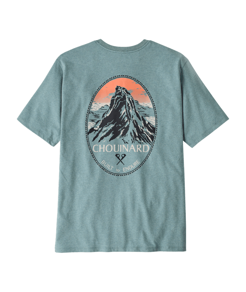 We added gradient-printed color to this classic graphic from the early days of Patagonia. The artwork is screen-printed on the Men's ChouinardŽ Crest Pocket Responsibili-TeeŽ that's made with recycled fabrics. By utilizing fabric scraps and recycled bottles, we reduce our reliance on virgin raw materials. Made in a Fair Trade Certified factory.