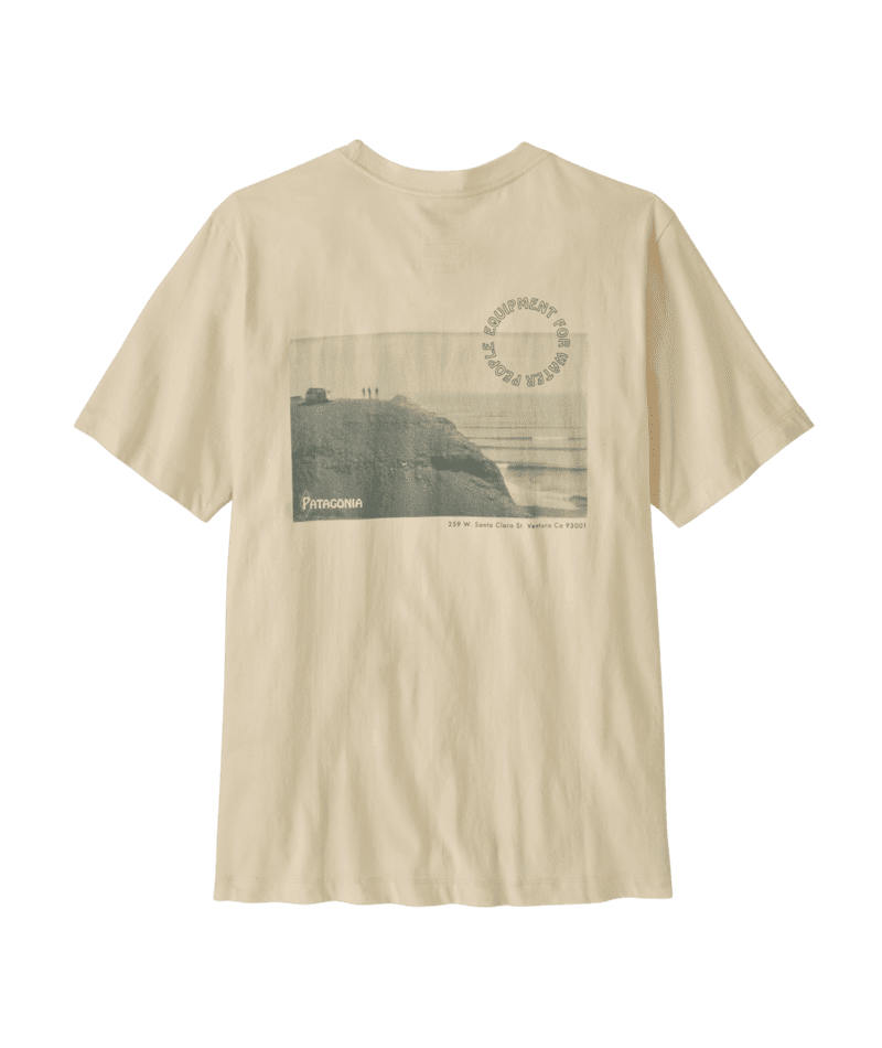 In 1968, Yvon Chouinard and four friends drove a van from Ventura, California, to Patagonia, surfing and climbing along the way. The film inMountain of Stormsin chronicled that journey, and our Water People Spotter graphic is based on a still from that film. We screen-printed the graphic on an everyday-weight T-shirt made of 100% organic cotton fabric. Made in a Fair Trade Certified factory.