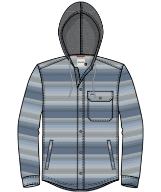 The lightweight brushed flannel is super soft to the touch but performs when moisture needs to be moved from the body. A two-paneled hood, constructed from a french terry organic cotton and recycled polyester blend features a drawcord cinch to keep your noggin warm and ears covered.