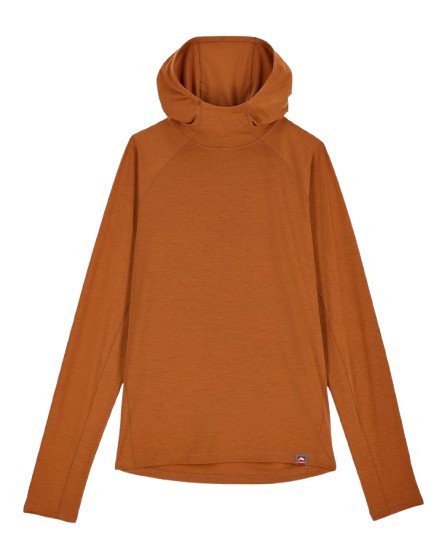 High neck, 3-panel hood designed for sun protection when up, versatile cowl-neck style when worn down
