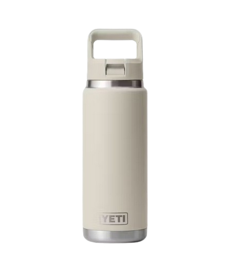 OVERVIEW Waste no time hydrating on your morning hikes, kayak trips, and daily commutes with our flip and sip color-matched straw cap water bottle. The Rambler 26 oz. Water Bottle is the goldilocks of our bottle line. It holds just the right amount for a day on the boat or at the beach, while still fitting in your YETI backpack. It comes with a color-matching straw cap that's leakproof when closed and easy to carry (thanks to the TripleHaul Handle). Like all Rambler Bottles, it's over-engineered and double-wall insulated to keep your water cold until the last sip, and it's dishwasher safe for easy cleaning. Plus, it comes with a wide-straw insert, so you get more drink with every sip.